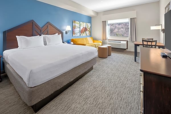 準備好享受充滿活力的住宿體驗,度假村提供多種令人興奮的設施,包括免費水上樂園和滑雪活動。別擔心,您的毛孩也歡迎入住,但需額外付費。您可以在室內游泳池暢游,或讓孩子們在免費兒童泳池玩耍,同時在溫泉浴池放鬆。度假村亦提供免費接駁車服務,確保輕鬆前往附近所有景點。